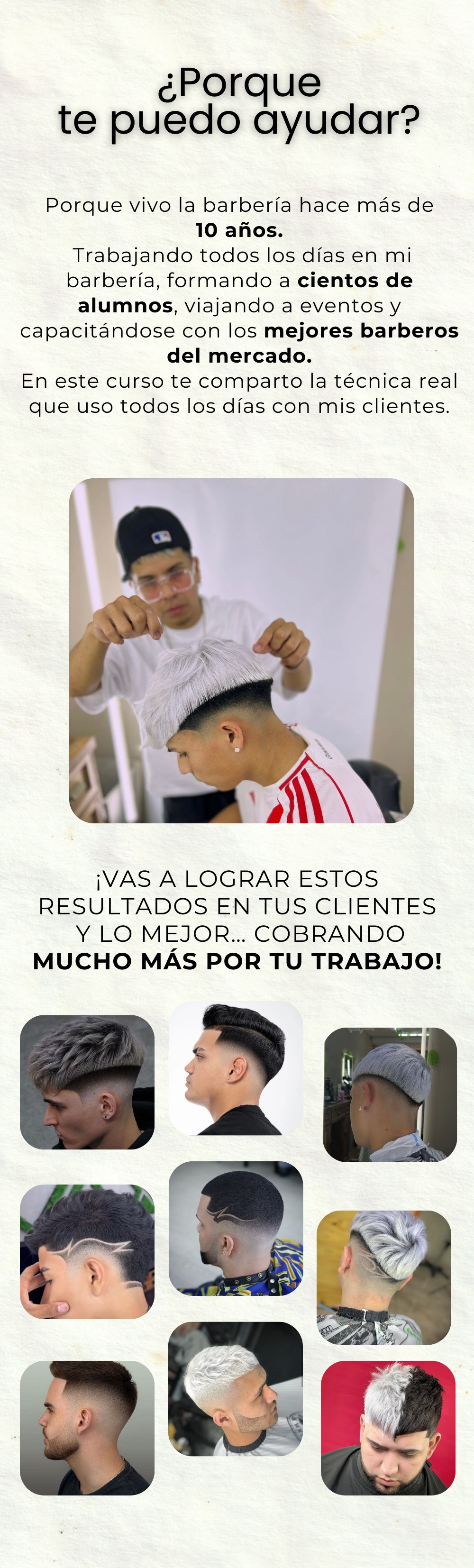 El curso está pensado tanto para barberos que recién empiezan como para los que ya trabajan y quieren mejorar su técnica, aprender color y destacarse más en su barbería.