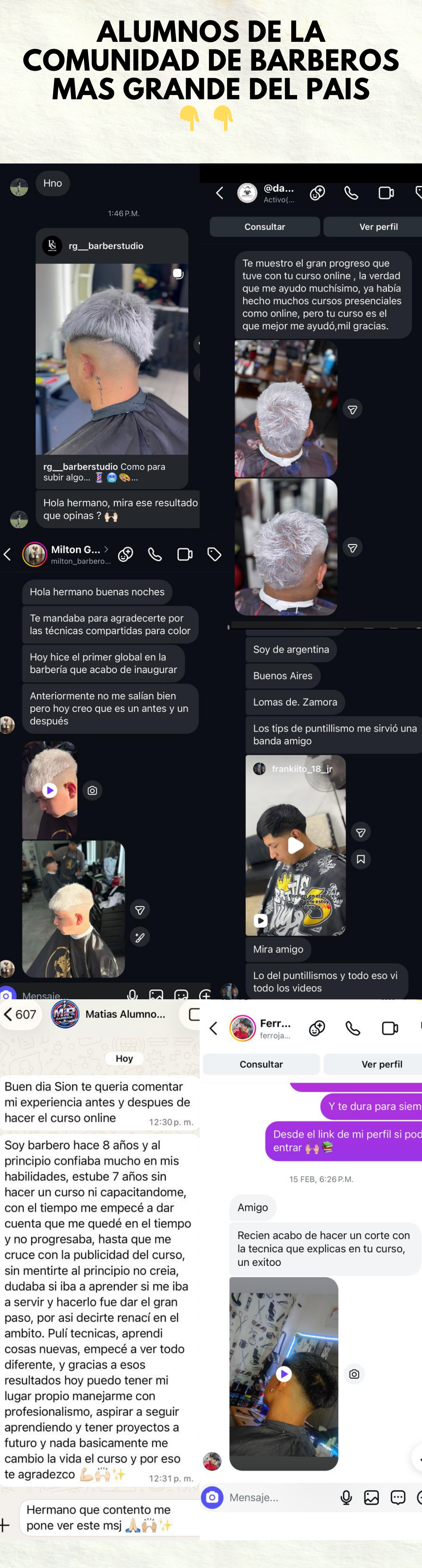 Sí. Al entrar al curso también accedés a la comunidad privada de barberos donde podés compartir trabajos, hacer preguntas y resolver dudas con otros colegas.